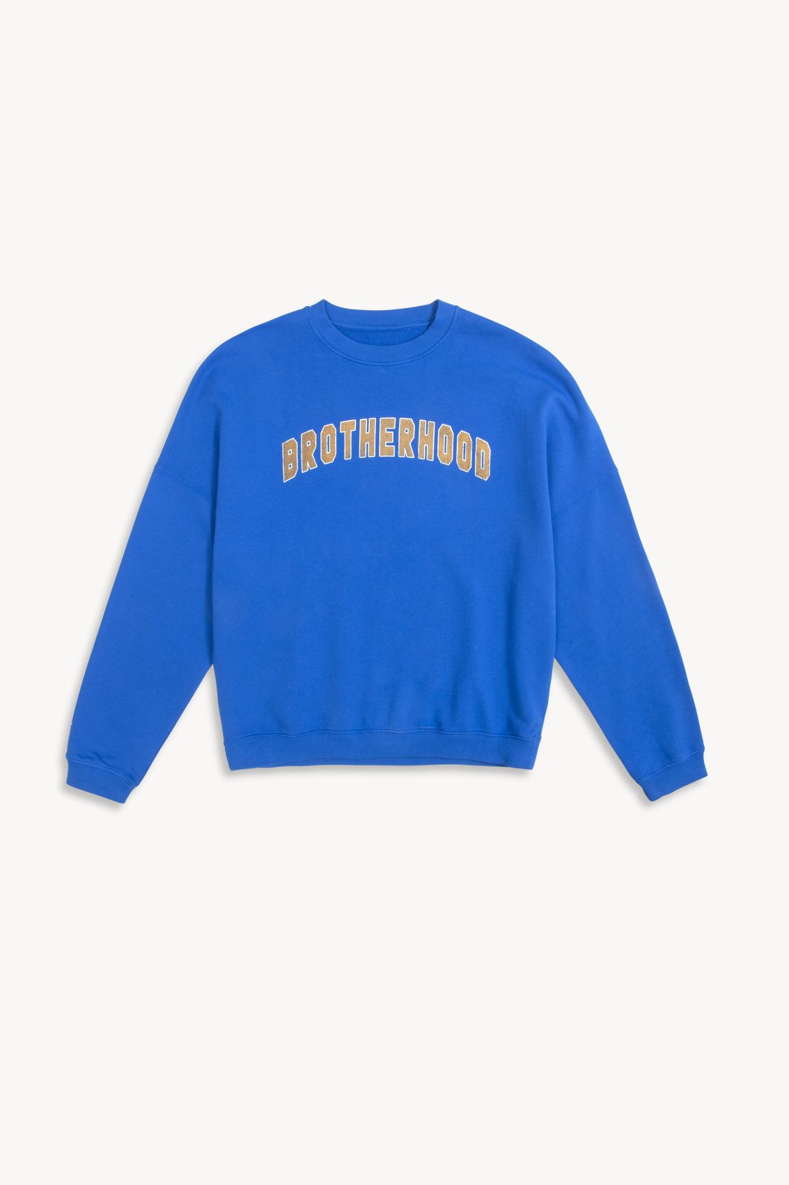 Varsity crewneck with a boxy athletic fit and the BROTHERHOOD lettering across the chest. Features a soft cotton feel, ribbed trims and a small emblem on the back. Built for warm-ups, campus days and that signature OnTracks team spirit.
