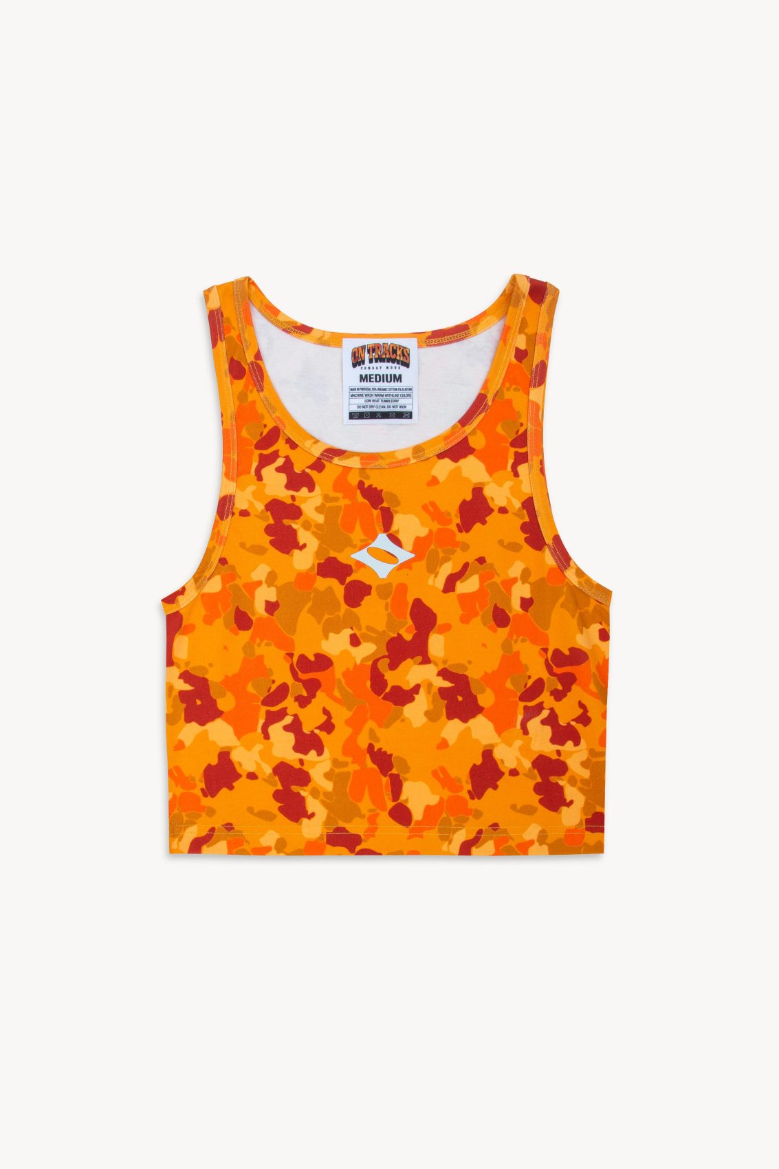 A cropped, fitted tank in light cotton. Camouflage AOP, combat mode, and iconic OnTracks logo at the chest.