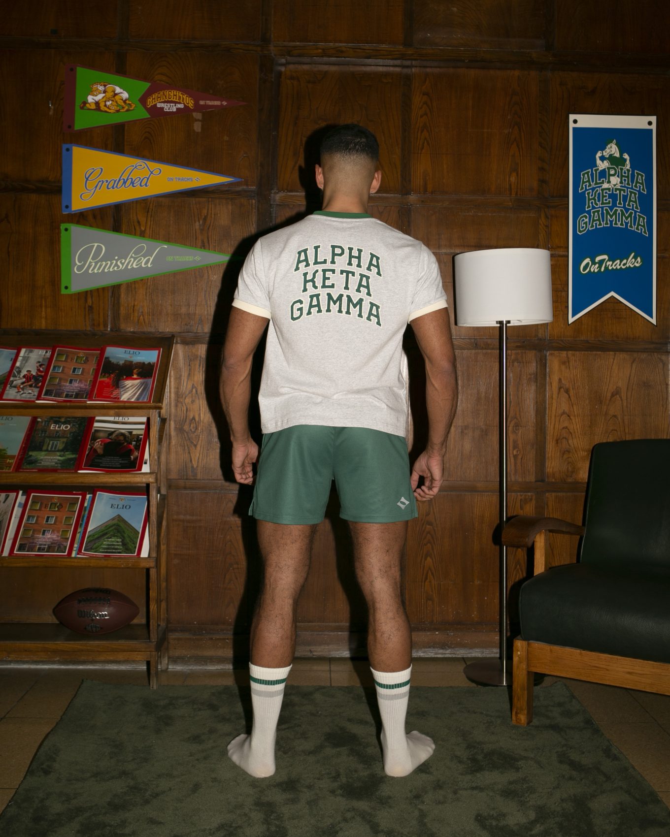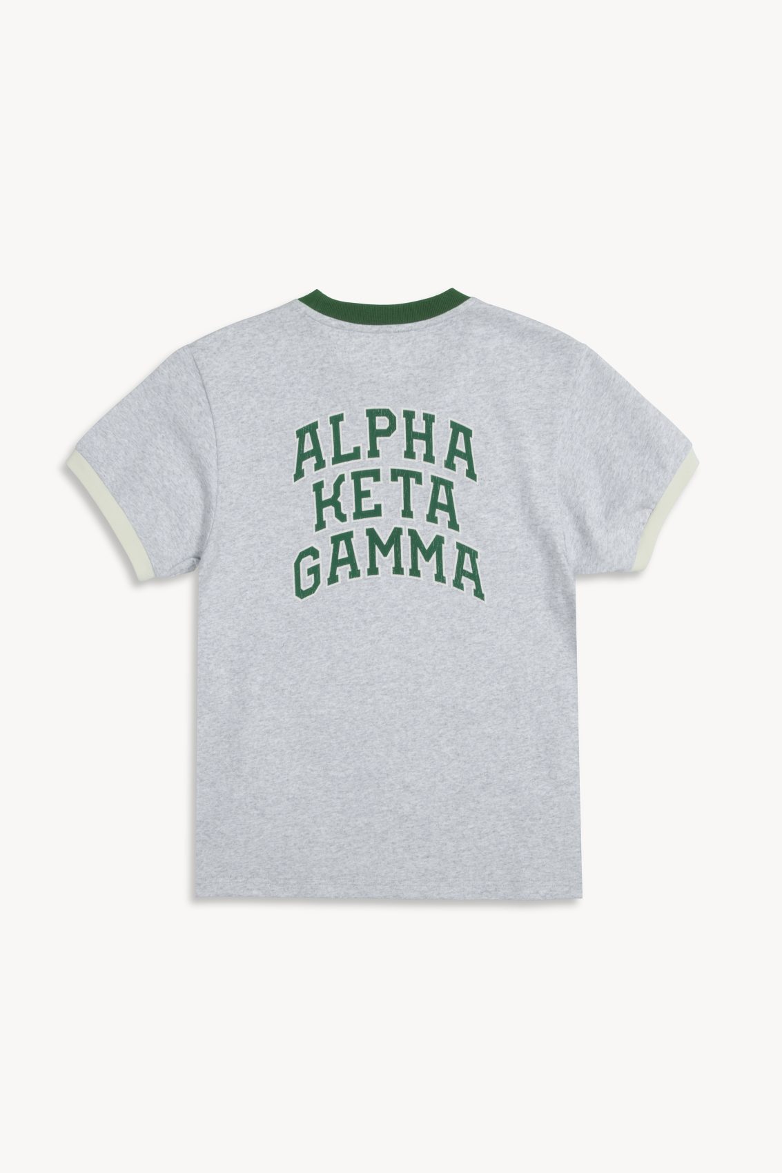 Varsity-inspired melange tee with a contrast neckline and the Horse emblem on the chest. Features the ALPHA KETA GAMMA lettering on the back and a classic athletic cut with a soft cotton feel. Built for training, campus days and crew moments.
