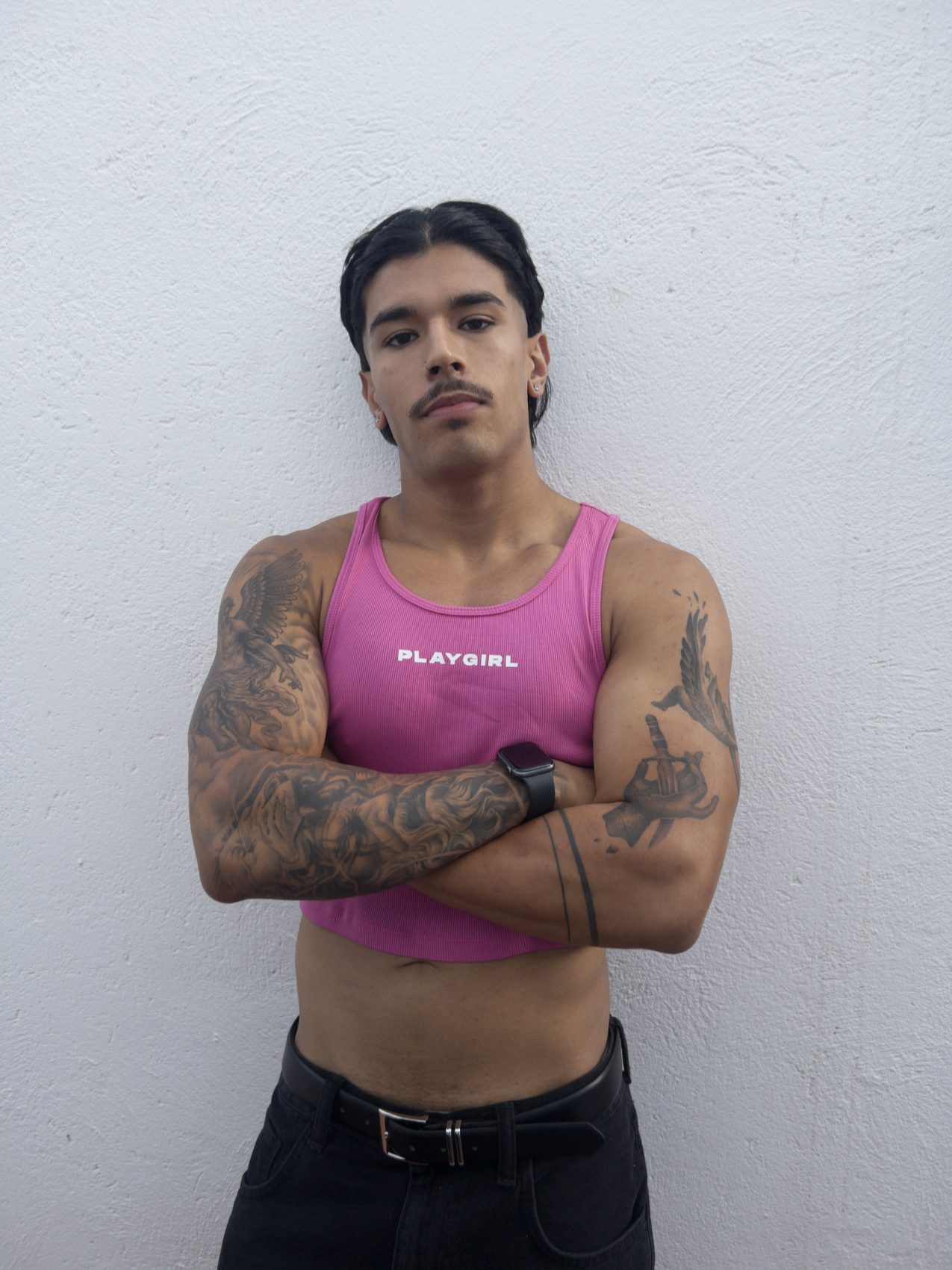 Fitted ribbed crop tank with PLAYGIRL print on chest. OT X PG logo on the back. Made in Portugal. Wear it under, over or alone.