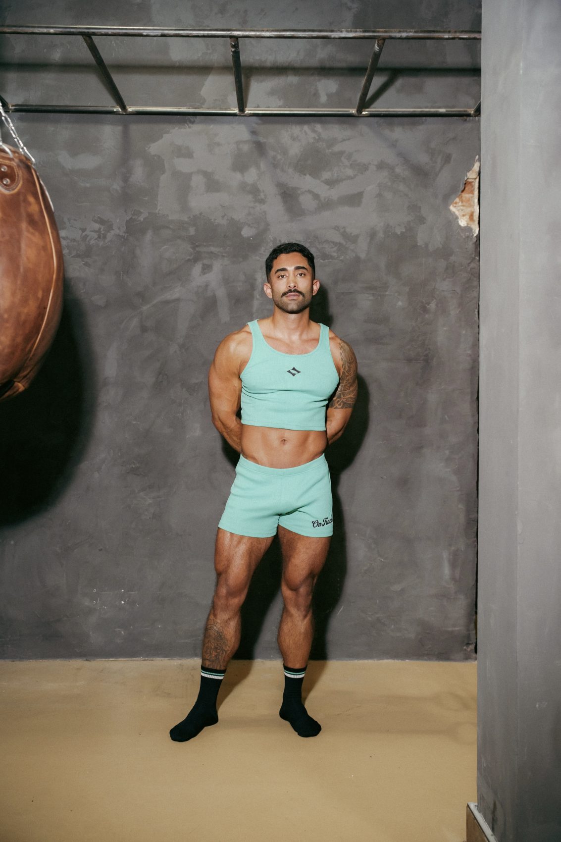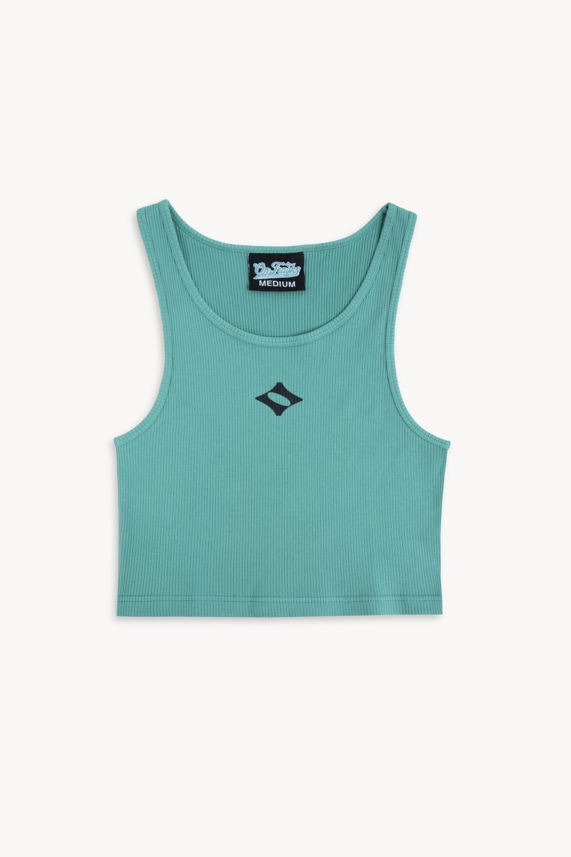 Cropped and tight, with just the right stretch. A sporty ribbed essential with our signature LOGO front and center.