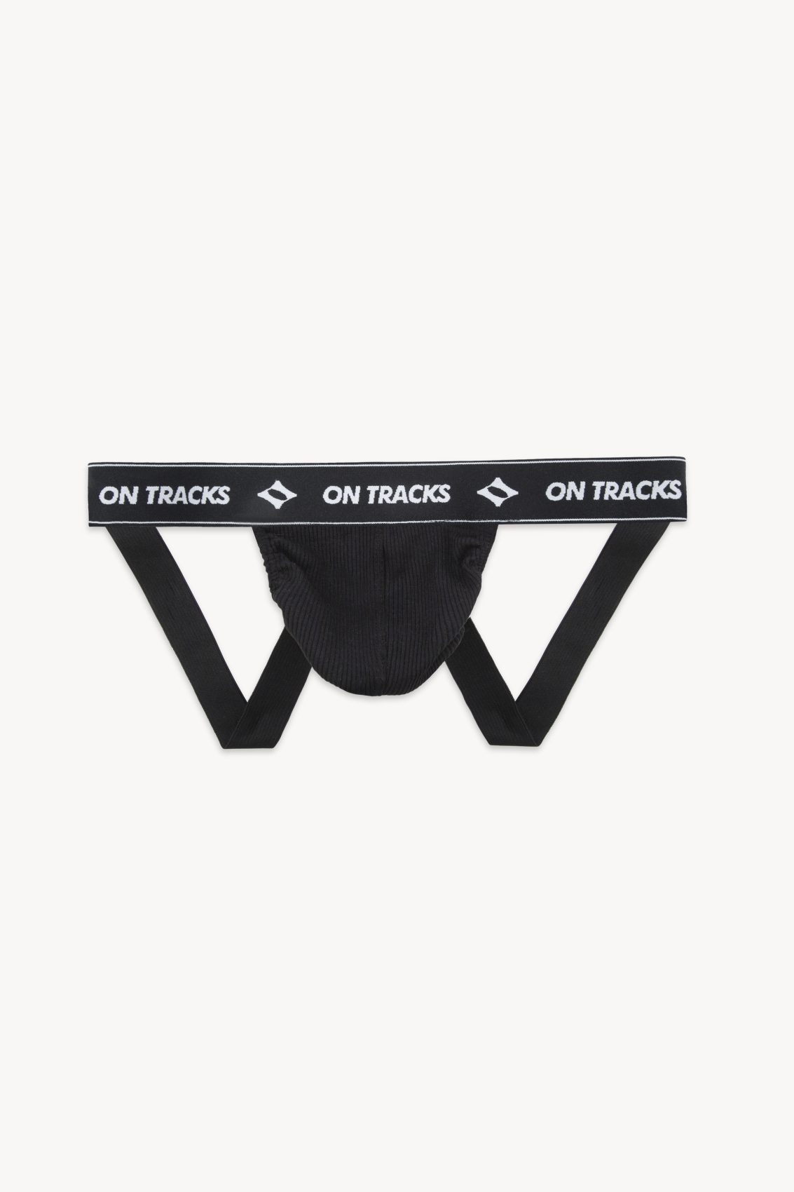Organic ribbed cotton low rise jockstrap with branded elastic waistband.