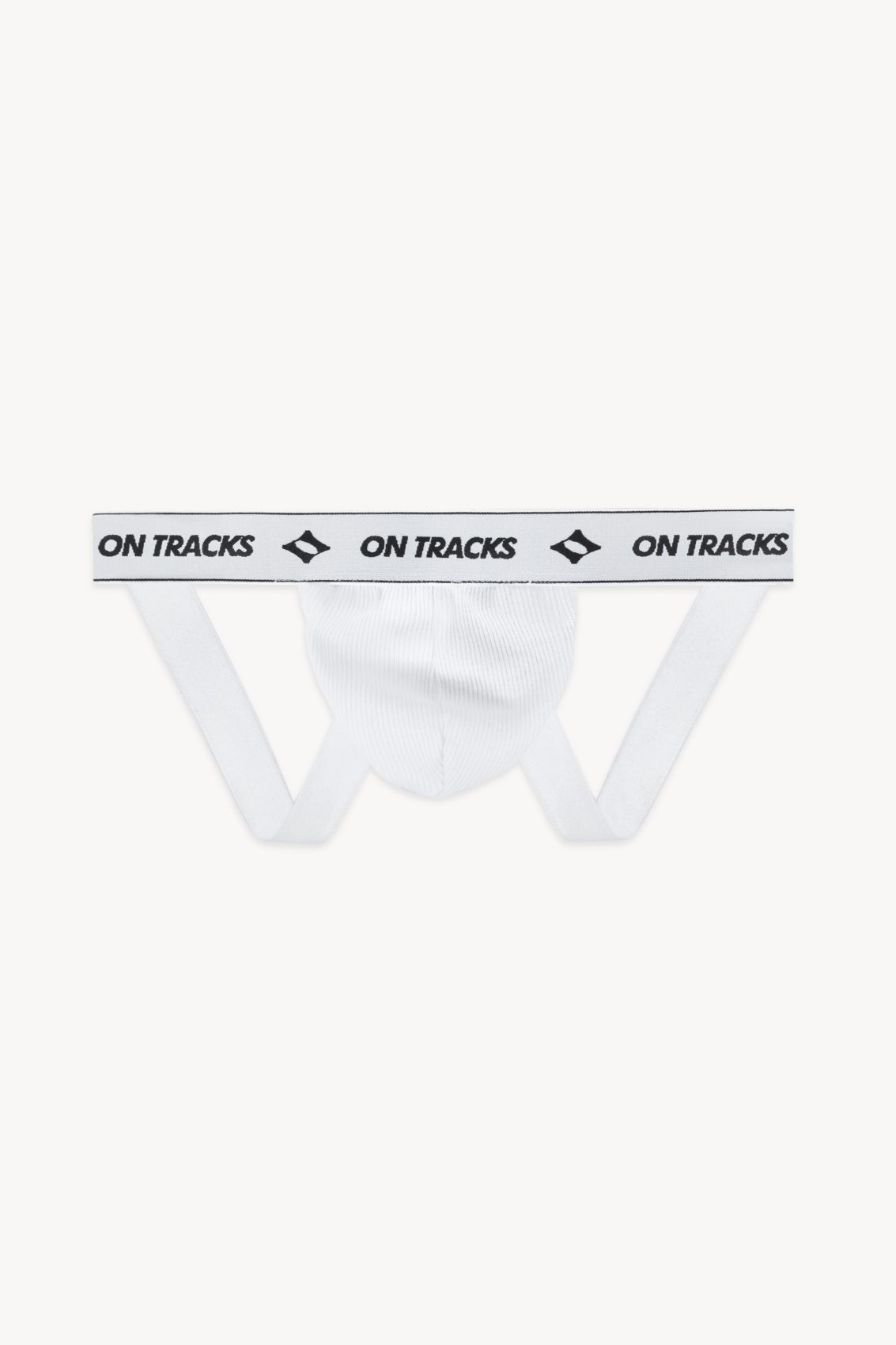 Organic ribbed cotton low rise jockstrap with branded elastic waistband.